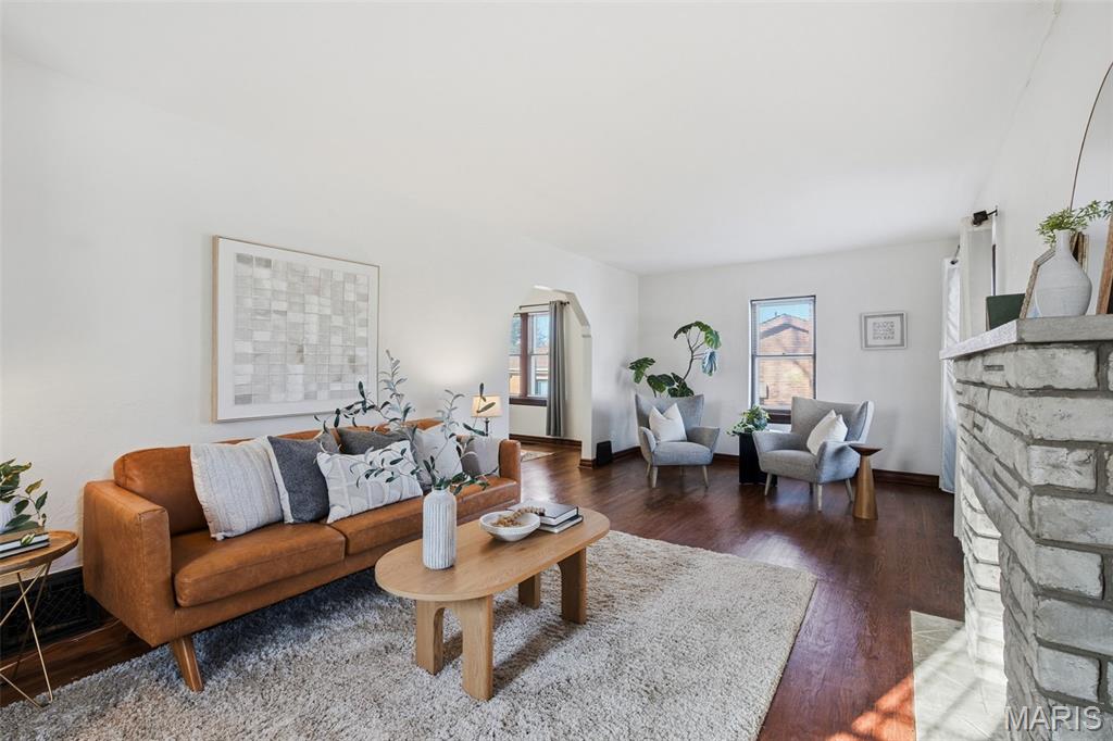 Est. 1935: Charming brick bungalow in the heart of Affton, recently renovated while preserving the timeless character buyers love. This quintessential full-brick home welcomes you with an original arched entry door and classic curb appeal. Inside, the spacious living room is anchored by a stone fireplace and offers plenty of room for multiple seating or conversation areas—ideal for everyday living or entertaining. The formal dining room provides an open, inviting space for gatherings and flows seamlessly into the beautifully remodeled kitchen, featuring 42” birch cabinetry, granite countertops, a center island, and newer stainless steel appliances. Recent renovations add both style and peace of mind, including refinished hardwood floors on the main level, newer carpet upstairs, newer LVP flooring throughout the lower level, & fresh paint throughout the entire home. An enclosed back porch offers a cozy retreat perfect for morning coffee, reading, or houseplants while overlooking the backyard. The main floor includes two generously sized bedrooms and a full bathroom with a shower, complemented by original woodwork, doors, hardware, and tall ceilings that enhance the home’s historic charm. Upstairs, you’ll find 2 additional bedrooms and flexible living space that can function as a home office, study, or creative space—made comfortable with new carpet and natural light. The lower level is a true standout, offering a finished recreation room perfect for movie nights, a home gym, or game space. In addition, the lower level features a private bedroom suite complete with egress windows, a walk-in closet, and a full bathroom—ideal for guests or extended family. A walk-out basement provides easy access to the backyard. Outdoor living is just as inviting with a great patio area for relaxing or entertaining, plus a detached two-car garage conveniently located near the rear porch door. This move-in-ready Affton gem blends classic character with modern updates, offering flexible living spaces and thoughtful renovations throughout which include a recently replaced roof for the house and garage.